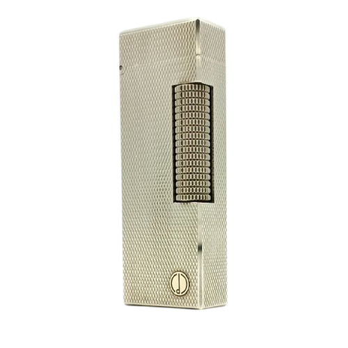 Accendino Rollagas realizzato in ottone placcato argento, meticolosamente inciso con una delicata lavorazione chiamata “punta diamante” e recante il caratteristico logo longtail. Fiamma morbida.