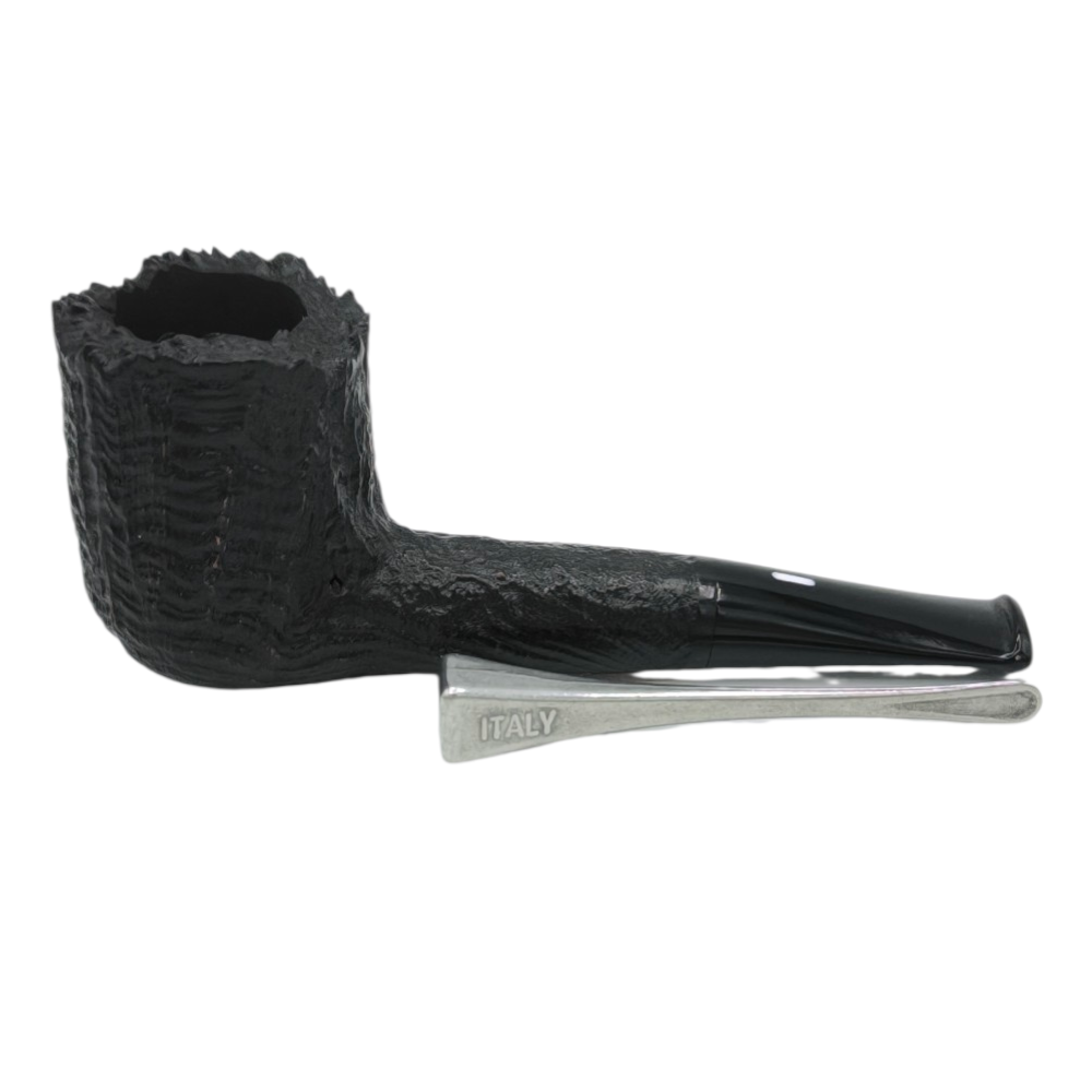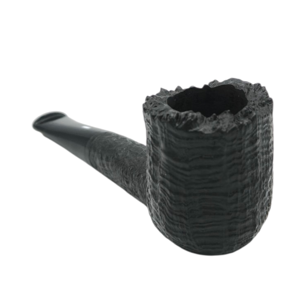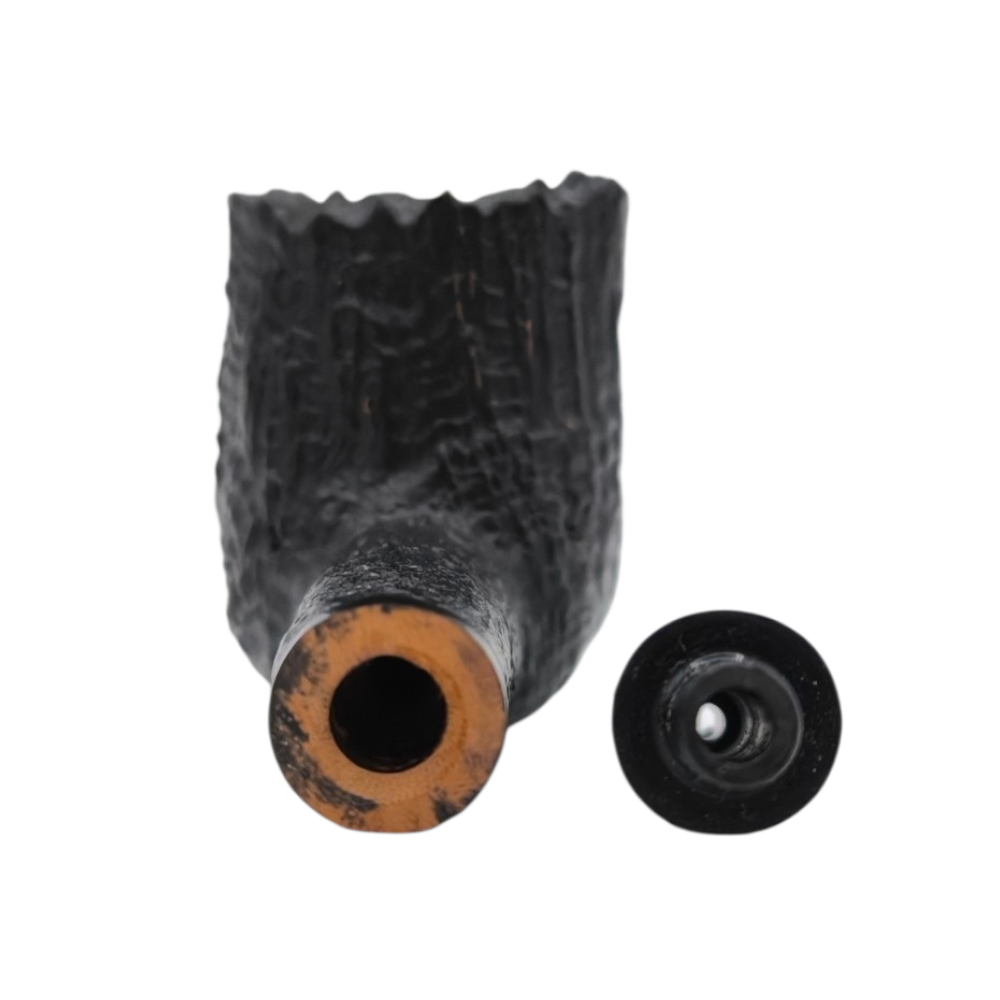 Questa Castello Old Antiquari firmata Kino incarna l’essenza della sabbiatura d’eccellenza. Il finissaggio scuro mette in risalto un ring grain fitto e profondo, segno di una radica stagionata con estrema cura per almeno dieci anni. Caratterizzata da una silhouette robusta che calza perfettamente nella mano. Il bocchino è impreziosito dall’iconica barretta bianca, segno distintivo di autenticità e prestigio. Una pipa per intenditori che cercano un fumo fresco e una texture inimitabile.”