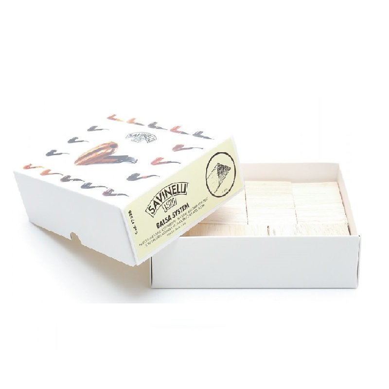 Questo prodotto, che contraddistingue tutte le pipe Savinelli, è un sistema filtrante basato sulle proprietà del legno di balsa. Ha come caratteristica l’assorbimento, in modo naturale e senza additivi o materiali chimici, dell’umidità e della fastidiosa acquerugiola che si crea all’interno della canna della pipa. Ne assicura anche una minore incrostazione e quindi una maggiore pulizia. Tale potere di assorbimento deriva dalle numerose fibre porose della balsa che garantiscono una fumata perfetta senza alterazioni della fragranza e dell’aroma del tabacco. La balsa in questione è 6mm quindi adatta per le pipe di questo diametro.