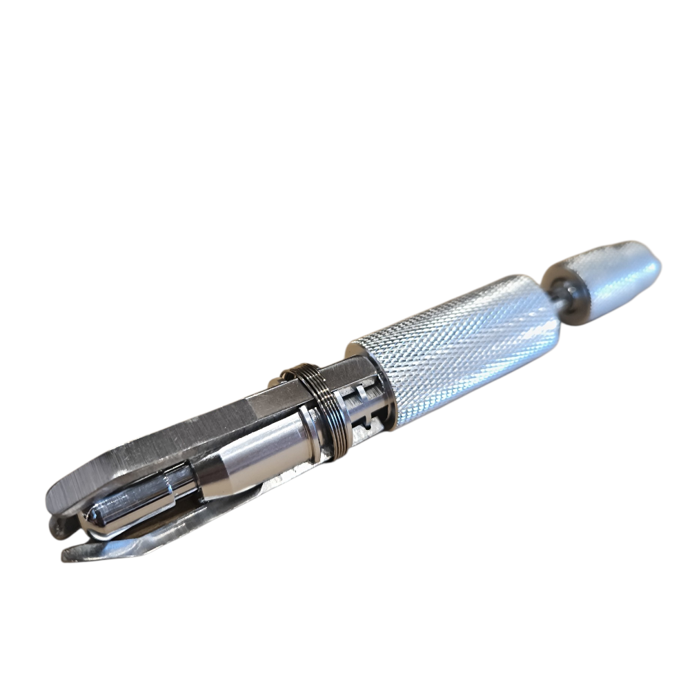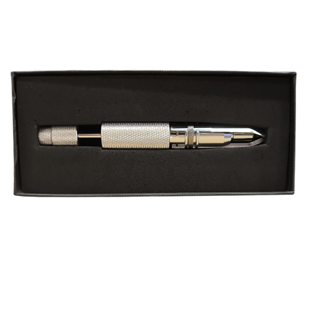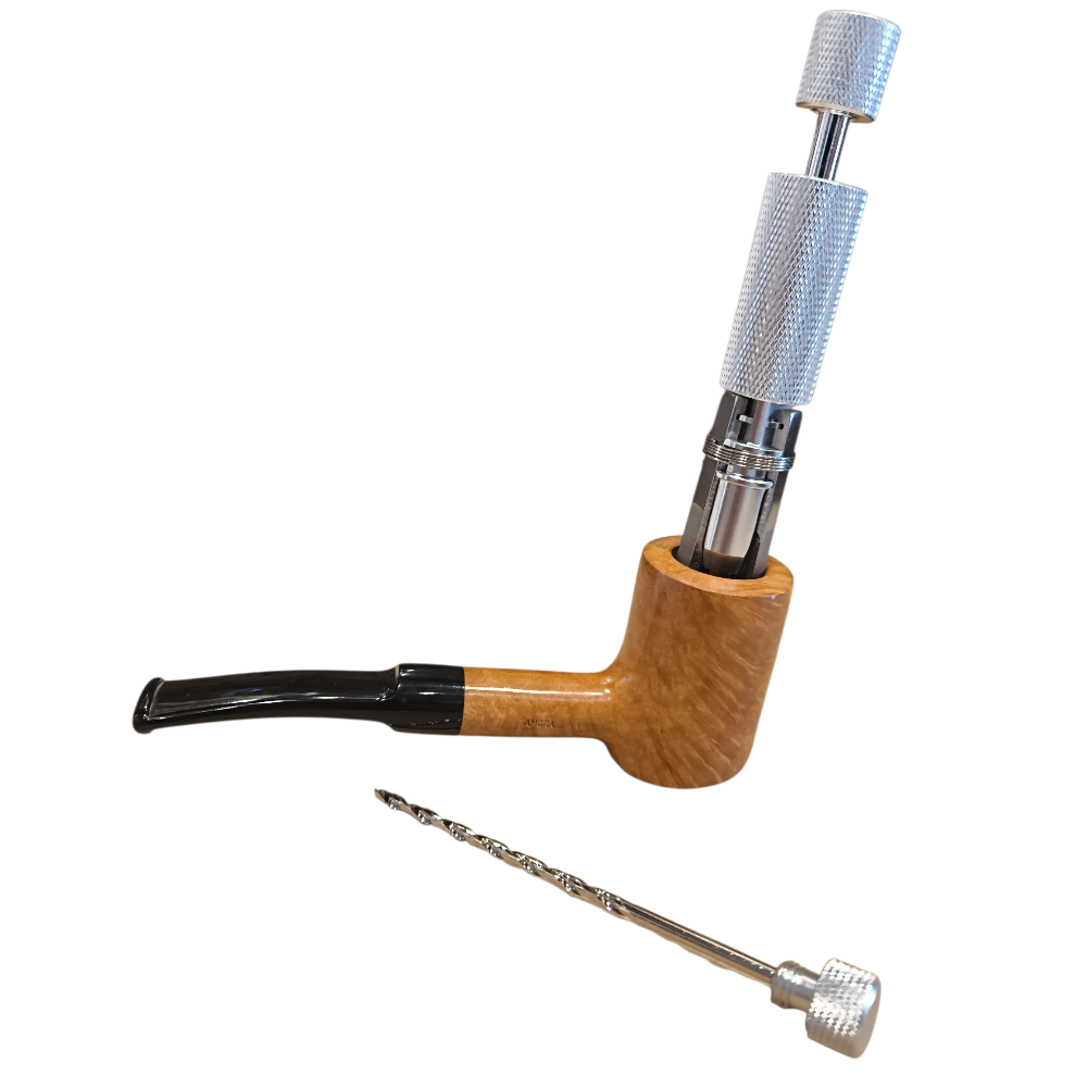 Fresa in acciaio di alta qualità per pulire l’interno del fornello della pipa dalle incrostazioni, con chiodo per sturare interno cannello. Ruotando il coperchio superiore si apre la fresa a secondo della dimensione del fornello per aderire perfettamente alle pareti.