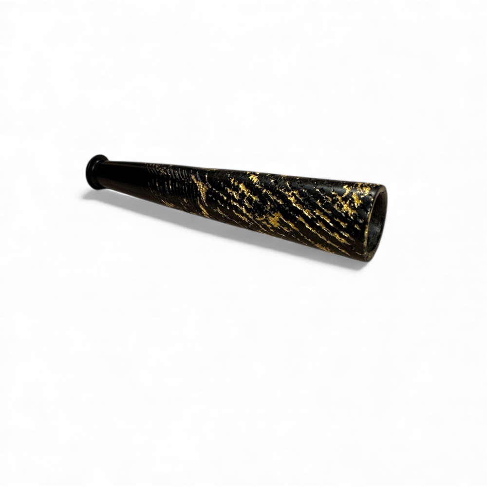 Fatto a mano, in Italia, con materiali di prima scelta con bocchino ebanite e corpo in morta oro 24kt..