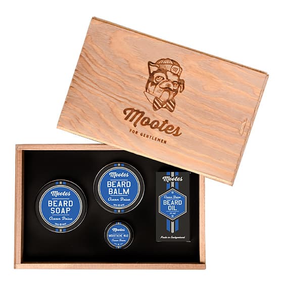Stai cercando un bel regalo per un amico, un parente o un buon conoscente che ha la barba o che vorrebbe diventarlo? Allora scegli il nostro set per la cura della barba Mootes #2. Tutti gli articoli sono garantiti per essere completamente realizzati in Svizzera e contengono solo ingredienti naturali di altissima qualità.