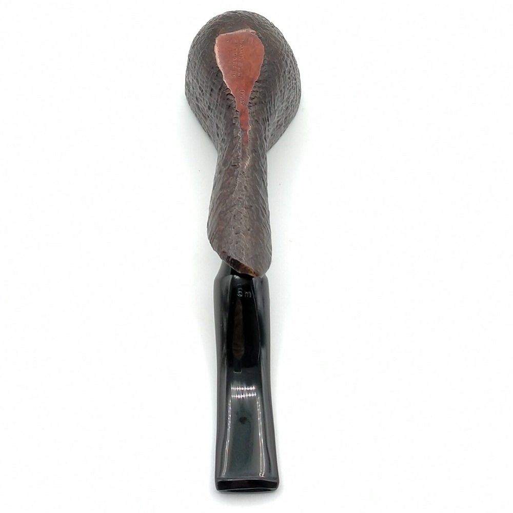 Autograph, una pipa lavorata a mano e prodotta utilizzando solo placche di radica di prima qualità. Finissaggio sabbiato naturale e bocchino nero. La classica firma oro di Achille Savinelli impressa sul bocchino sta a certificare l’eccelsa qualità di questa pipa. Foro 6mm