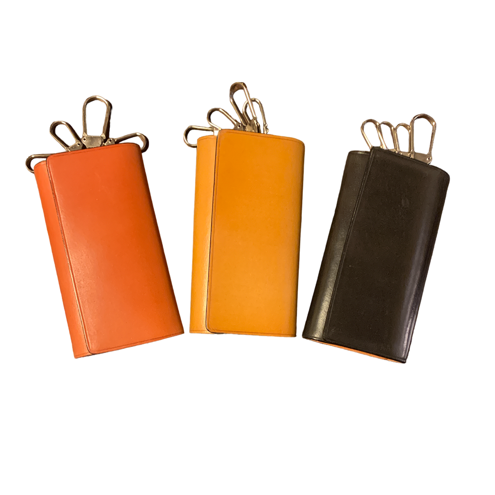 Il nostro portachiavi è realizzato a mano in pelle conciata al vegetale e presenta cinque ganci portachiavi in ​​metallo