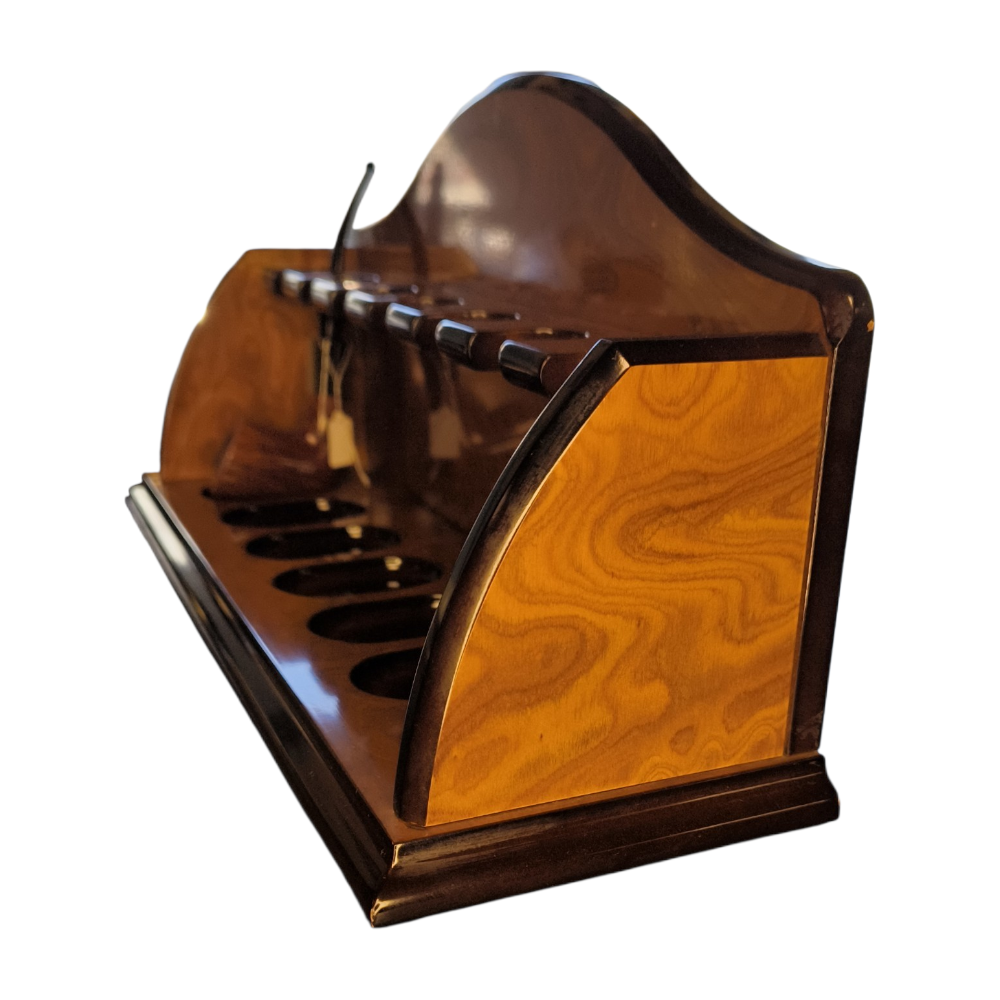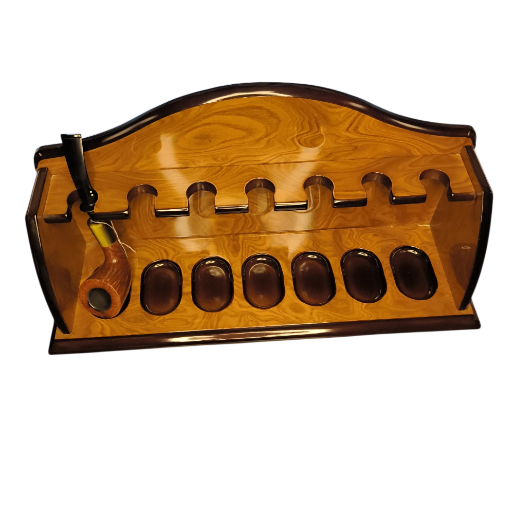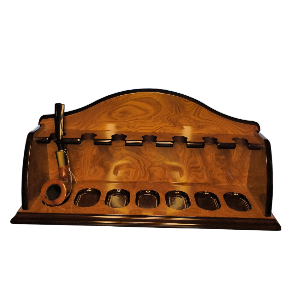 Stupendo reggi-pipe della storica azienda Savinelli, seminuovo in radica di altissima qualità. Presenta lievissimi e impercettibili graffi dovuti all’uso.